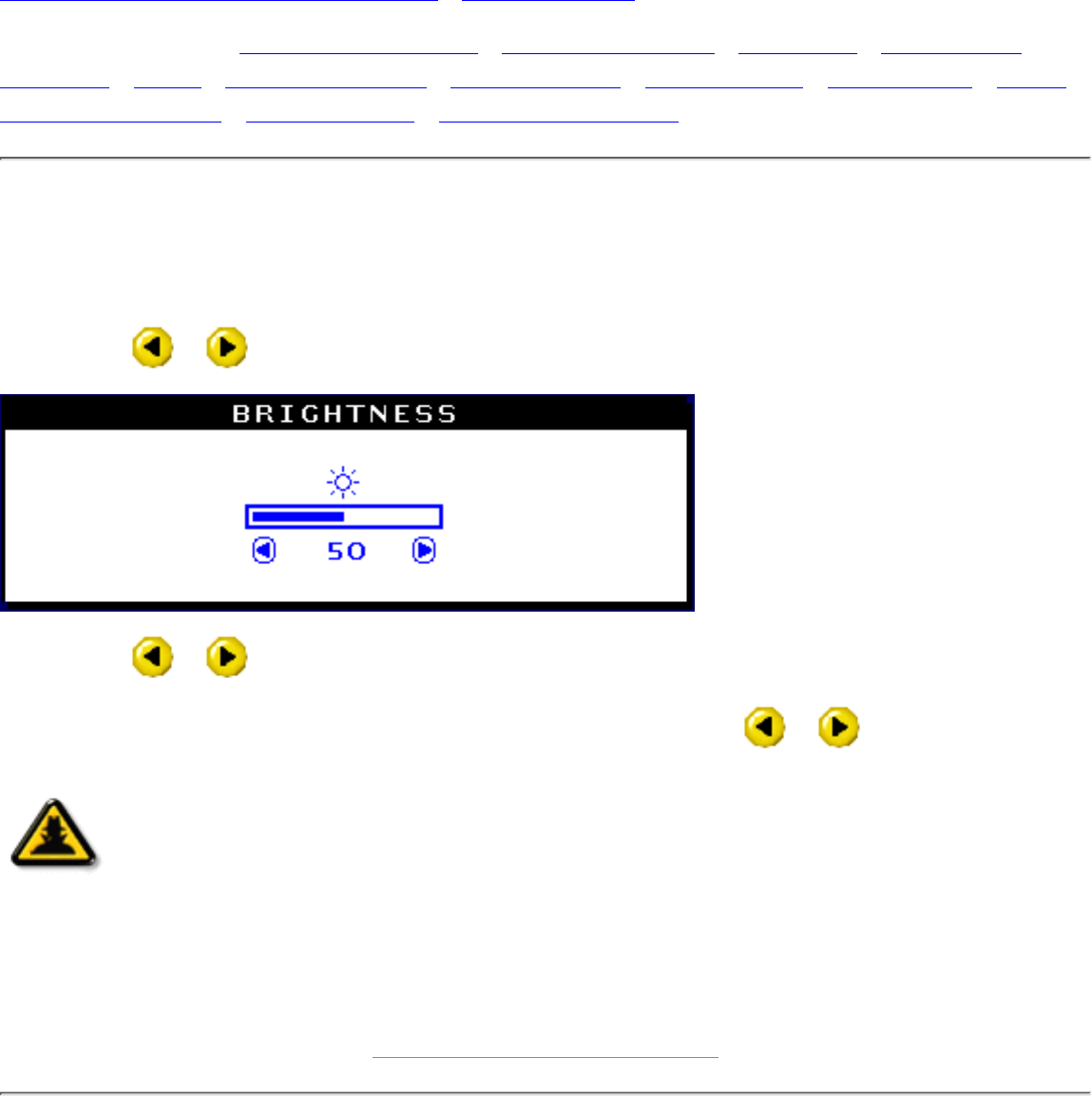 1) Press the or button on the monitor. The BRIGHTNESS window appears.