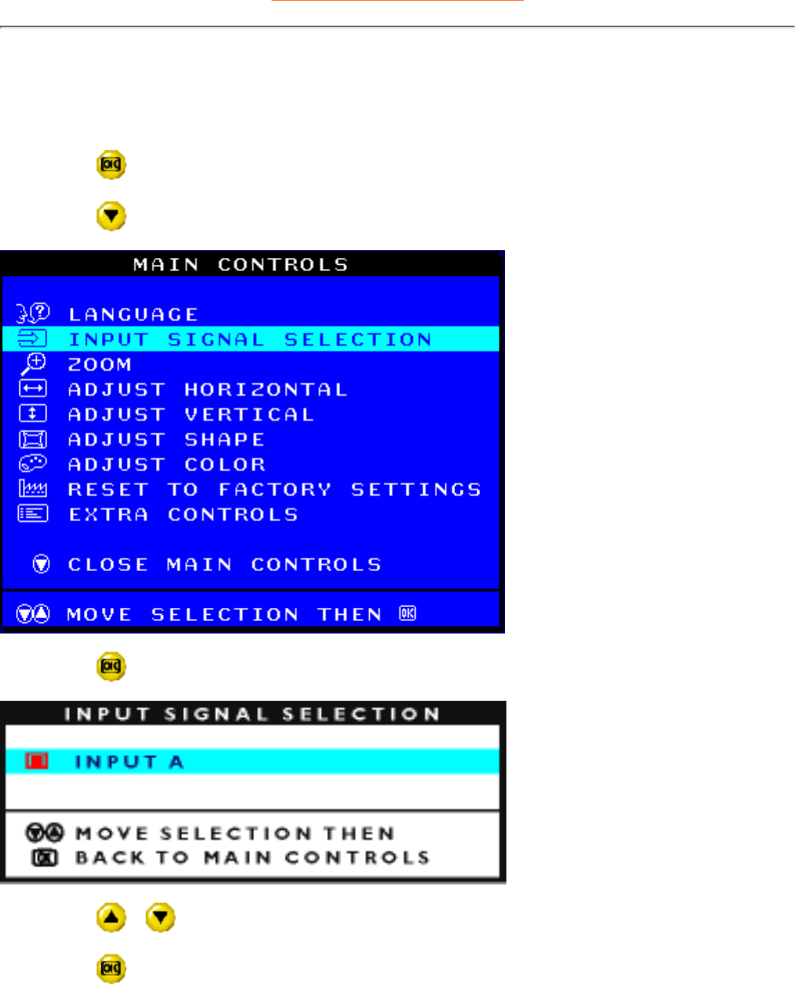 INPUT SIGNAL SELECTION determines what you see on the screen. The default setting is INPUT A, but if