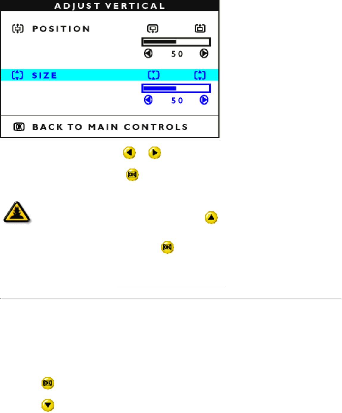 6) To adjust the vertical size, press the or button.