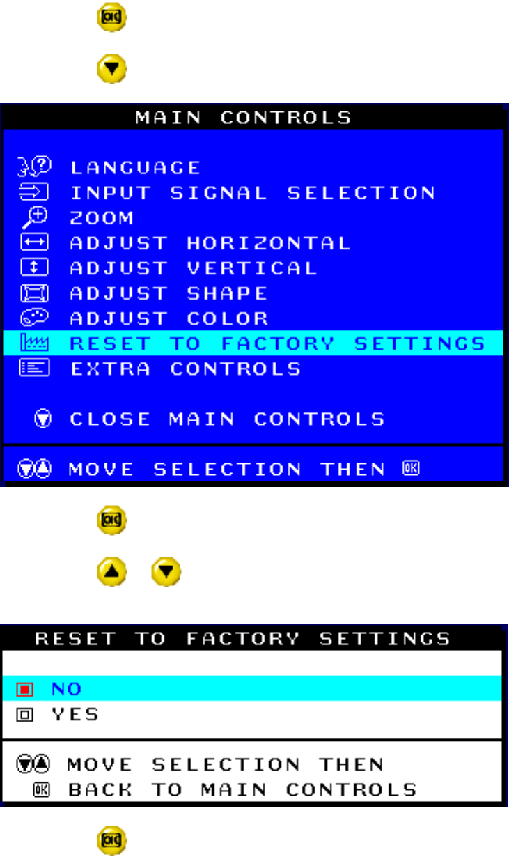 3) Press the button. The RESET TO FACTORY SETTINGS window appears.