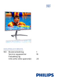 Wir stellen 19 PDF-Handbücher Philips 276E7QDAB/00 zum kostenlosen herunterladen nach Dokumenttypen zur Verfügung Bedienungsanleitung