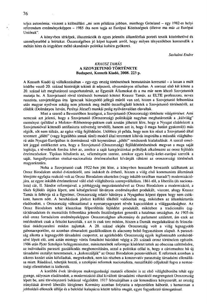 után magyar nyelven sokáig nem jelentek meg önálló összefoglaló kötetek a Szovjetunió történetéről, az