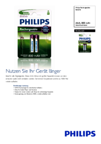 Wir stellen 2 PDF-Handbücher Philips Rechargeables Batterie zum kostenlosen herunterladen nach Dokumenttypen zur Verfügung Bedienungsanleitung